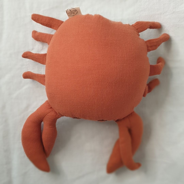 Ce crabe réserve une surprise ! Il cache un grelot dans son ventre et ses pattes bruissent sous les doigts !