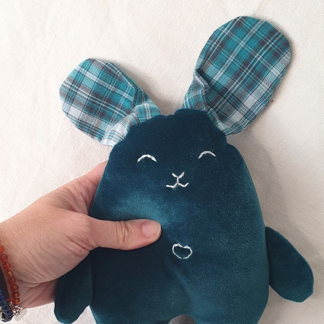 Découvrez Ethan le Lapin, un adorable doudou confectionné à la main pour offrir à votre bébé confort et compagnie. Ethan est méticuleusement réalisé à partir de tissus surcyclés, un velours tout doux et un coton à carreaux, garantissant à la fois douceur et durabilité.