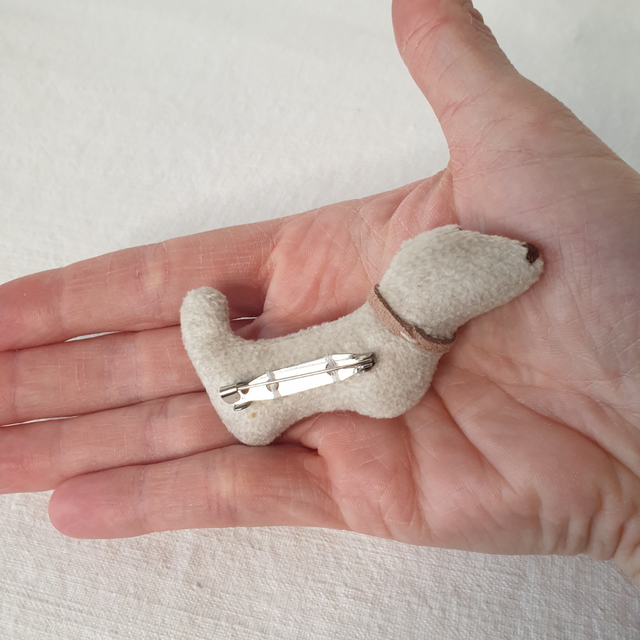 La broche teckel écru