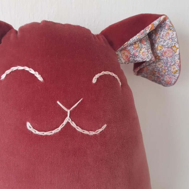 Vous pouvez choisir d'offrir ce doudou-coussin avec la broderie d'un prénom au dos.