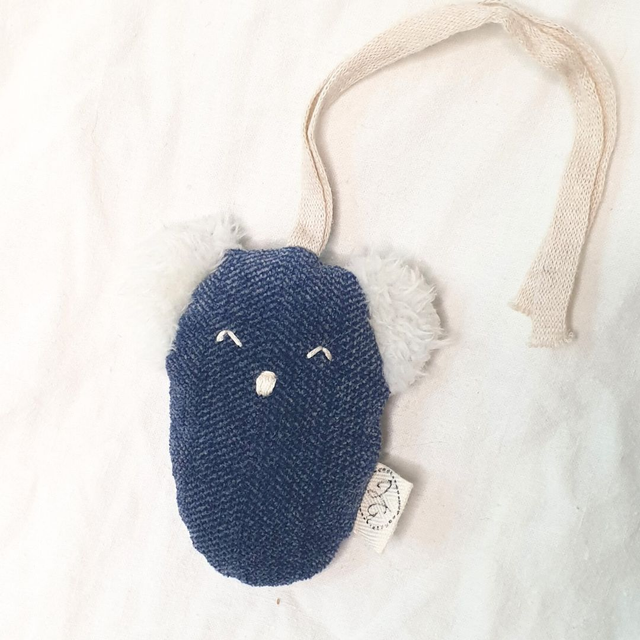 Fabriqué à partir de velours bleu et de fausse fourrure écrue surcyclés, chaque pièce est unique avec des détails brodés à la main, offrant une texture douce et réconfortante. Avec son lien pratique, accrochez-le où vous le souhaitez pour que votre enfant l'ait toujours à portée de main.