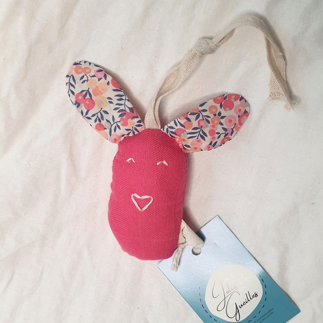 Engagé dans une approche écologique, le Kiki lapin est fabriqué à partir de chutes de tissu surcyclées, une option respectueuse de l'environnement pour les parents conscients.