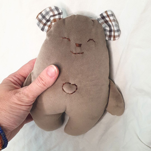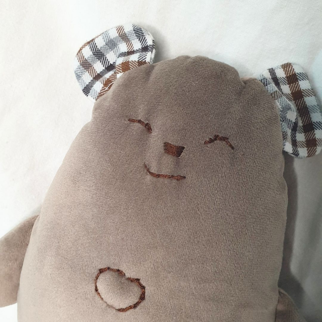 Raymond l'Ourson est un adorable doudou dodu en forme d'ours. Il est d'une incroyable douceur avec un velours provenant d'une chute de tissu neuf. Ses oreilles sont confectionnées en coton, provenant d'une chemise homme.